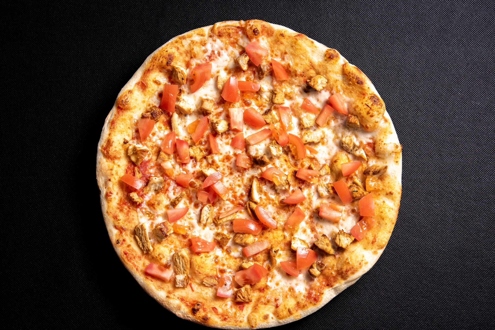 blat pizza,sos pomodoro,mozzarela,salam picant,crema de branza -