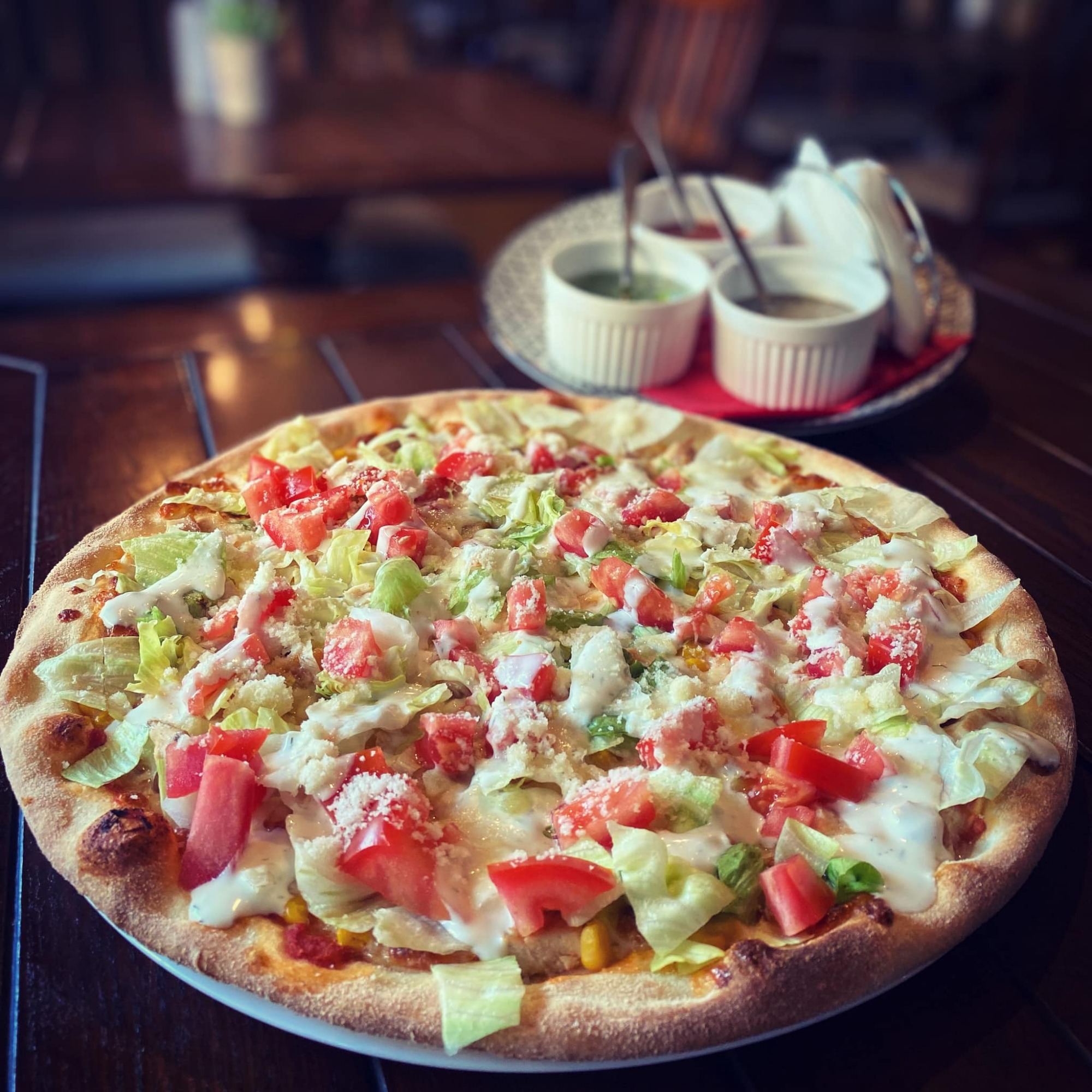 blat pizza,sos pomodoro,mozzarella,gorgonzola,cascaval afumat,parmezan,bacon